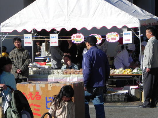 | 既に手にポリ袋が・・・、今日の売上は期待できます | ステージ上では子供たちのダンスが始まりました |